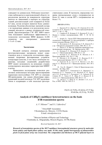 A. V. Nikonov and N. I. Iakovleva Analysis of CdHgTe multilayer heterostructures on the basis if IR transmission spectra 64