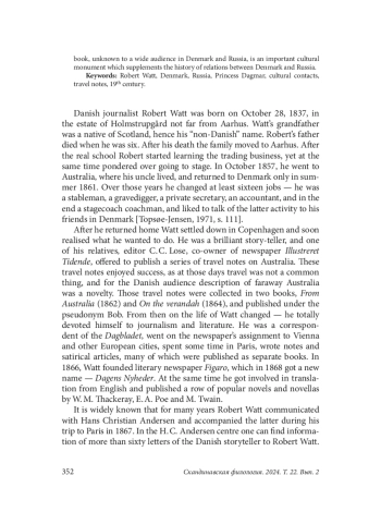13. H. C. Andersen centret. Breve til Robert Watt. Available at: https://andersen.sdu.dk/brevbase/person.html?limit=500&pid=1067&breve=modtaget&brevsort=-Dato&sortorder=asc&start=0(accessed:30.05.2024).
