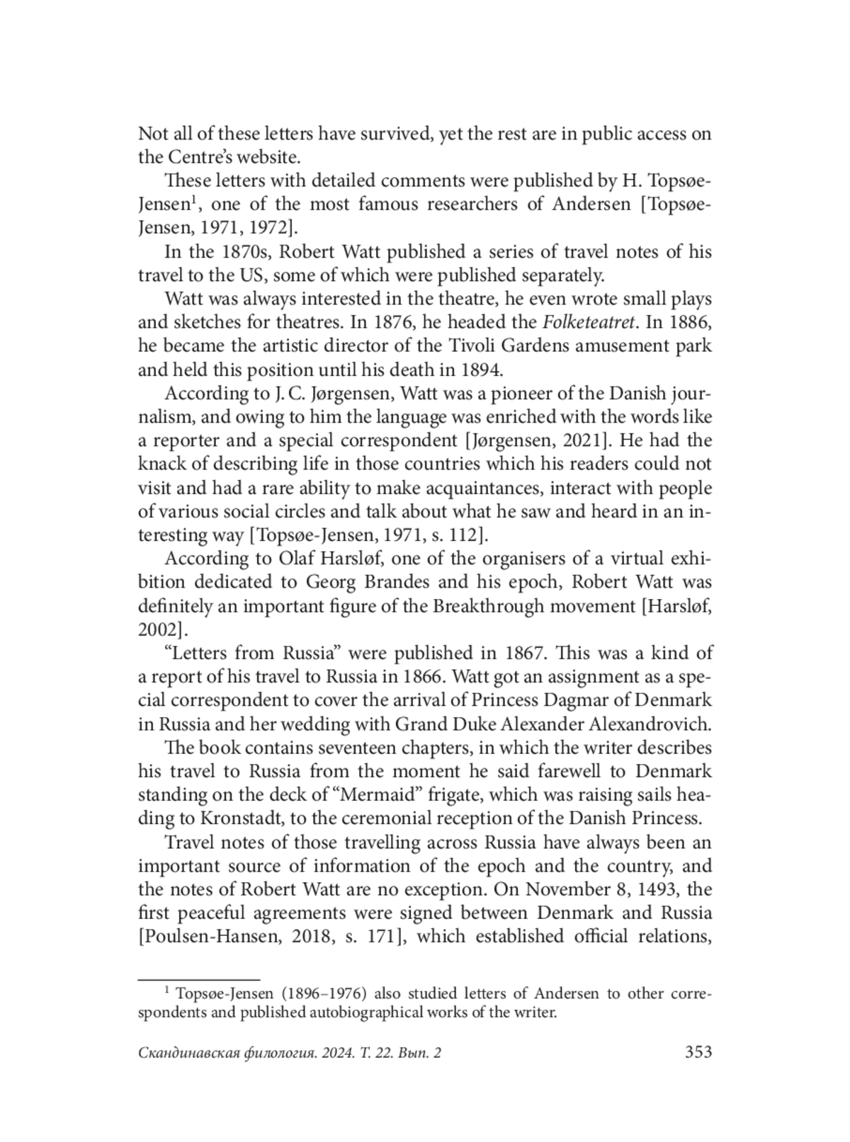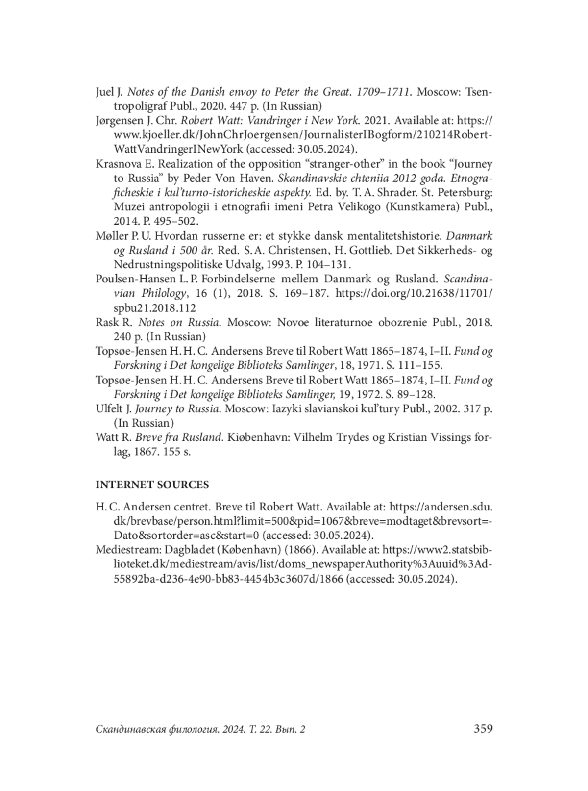 7. Poulsen-Hansen L. P. Forbindelserne mellem Danmark og Rusland. Scandinavian Philology, 16 (1), 2018. S. 169-187. DOI: 10.21638/11701/spbu21.2018.112