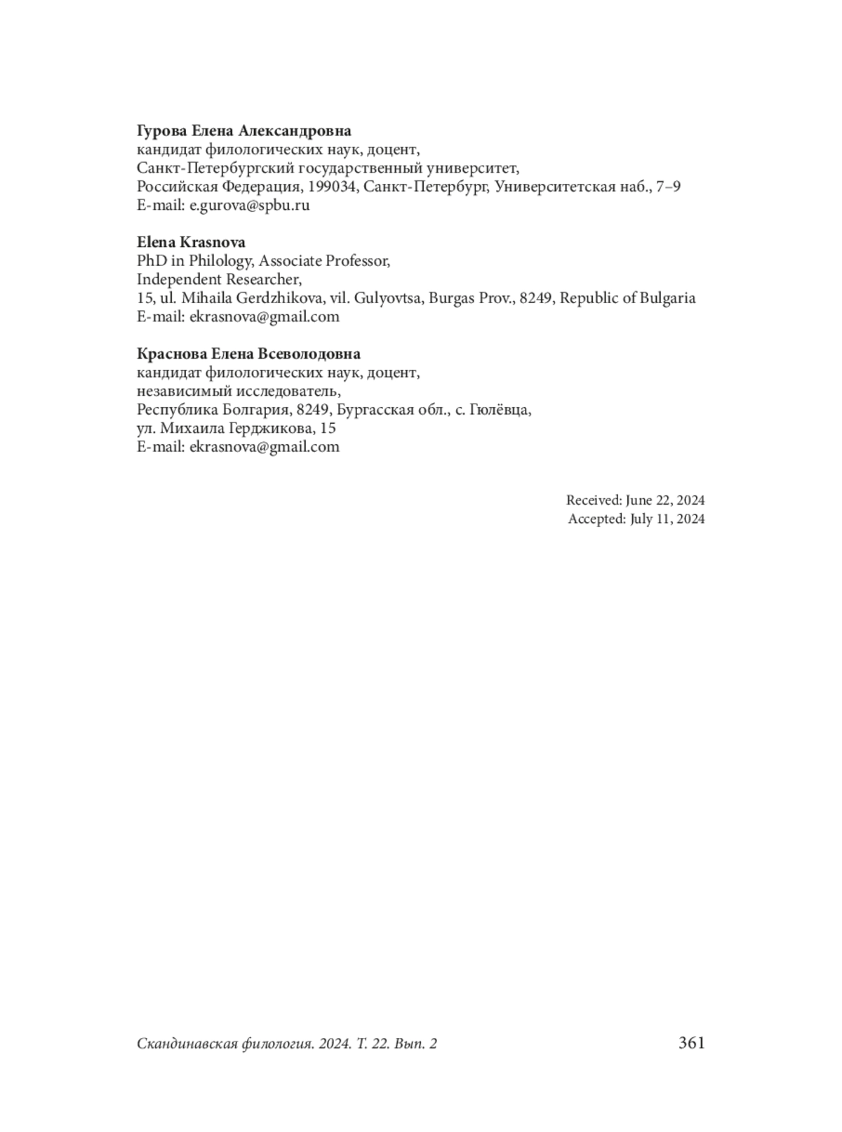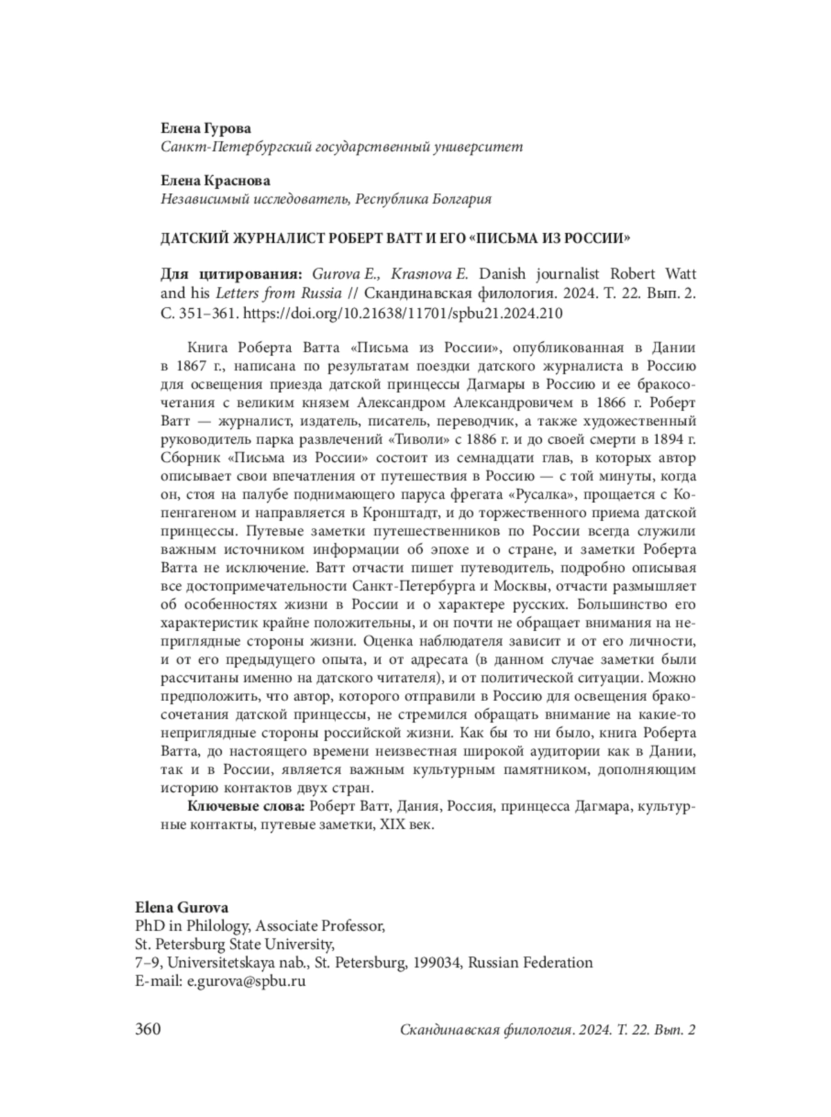 5. Krasnova E. Realization of the opposition “stranger-other” in the book “Journey to Russia” by Peder Von Haven. Skandinavskie chteniia 2012 goda. Etnograficheskie i kul’turno-istoricheskie aspekty. Ed. by. T. A. Shrader. St. Petersburg: Muzei antropologii i etnografii imeni Petra Velikogo (Kunstkamera) Publ., 2014. P. 495-502.