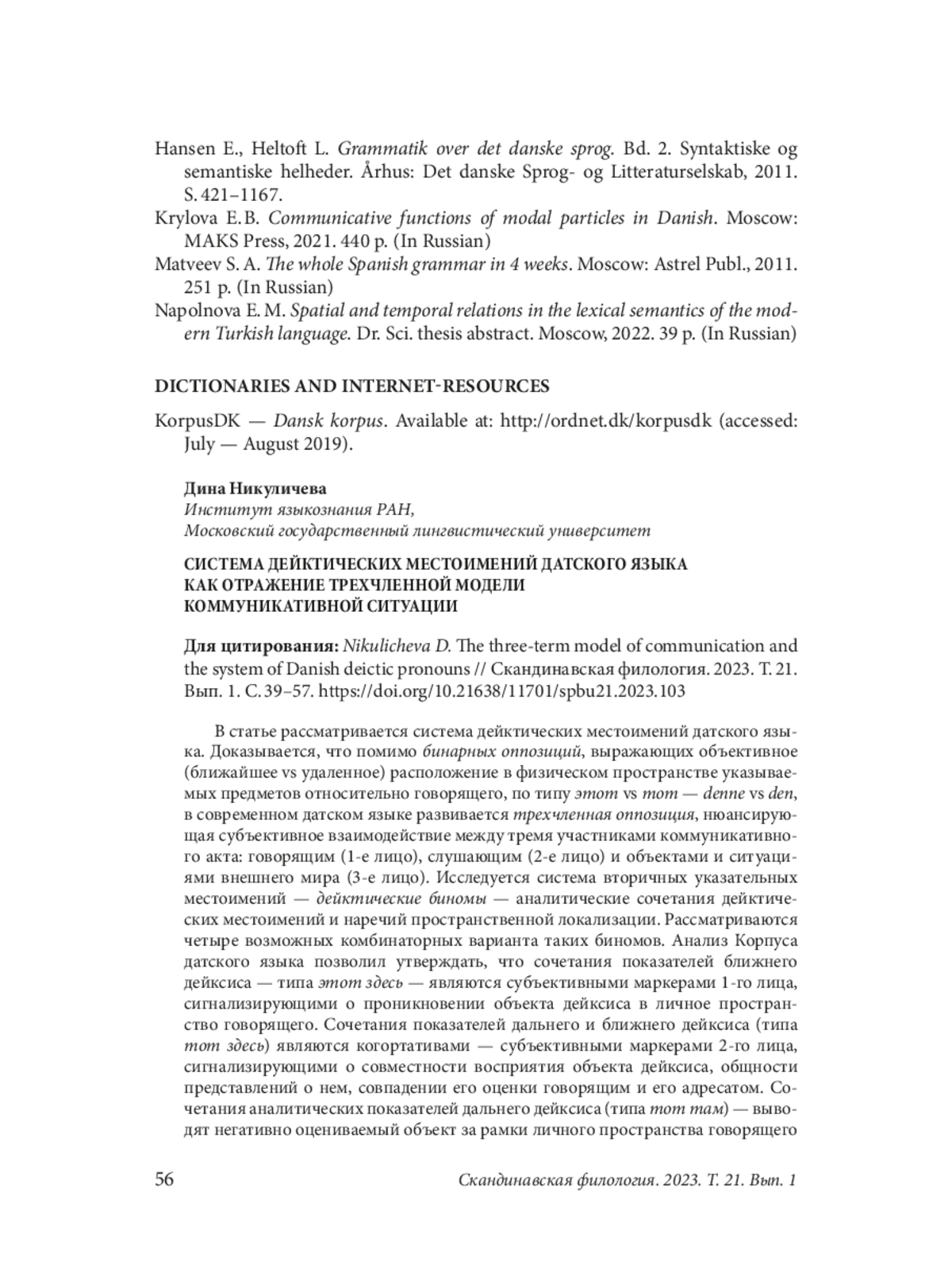 5. Krylova E. B. Communicative functions of modal particles in Danish. Moscow: MAKS Press, 2021. 440 p. (In Russian). EDN: OVXVRV