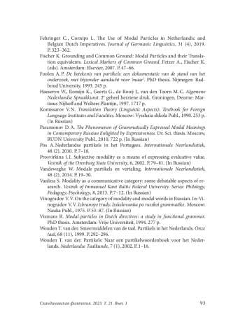 10. Vandeweghe W. Modale partikels en vertaling. Internationale Neerlandistiek, 48 (2), 2014. P. 19-30.