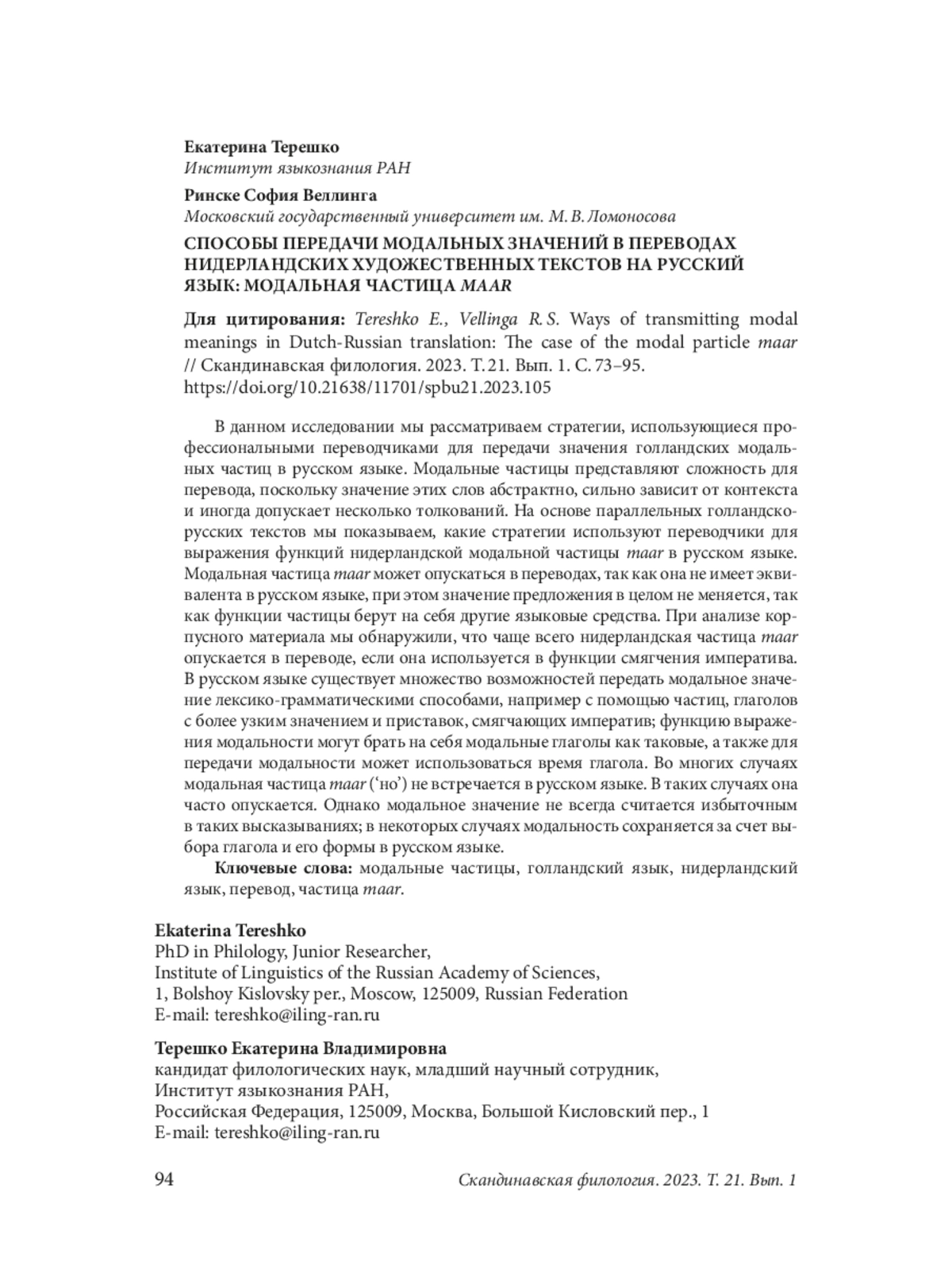 2. Fehringer C., Cornips L. The Use of Modal Particles in Netherlandic and Belgian Dutch Imperatives. Journal of Germanic Linguistics, 31 (4), 2019. P. 323-362.