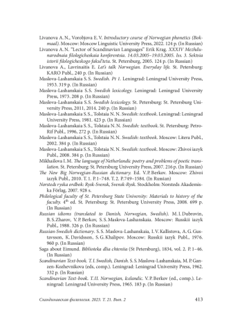 9. Берков В. П. Норвежская лексикология. 2-е изд. СПб.: Филол. ф-т СПбГУ, 2009. 184 с.; СПб.: Филол. ф-т СПбГУ, 2011a. 192 с.