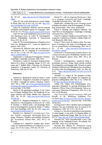 27. Kochetov A. The role of social factors in the dynamics of sound change: A case study of a Russian dialect. In: Language Variation and Change. 2006. Vol. 18. No 1. Pp. 99-119. DOI: 10.1017/S0954394506060030 EDN: HBQCXY