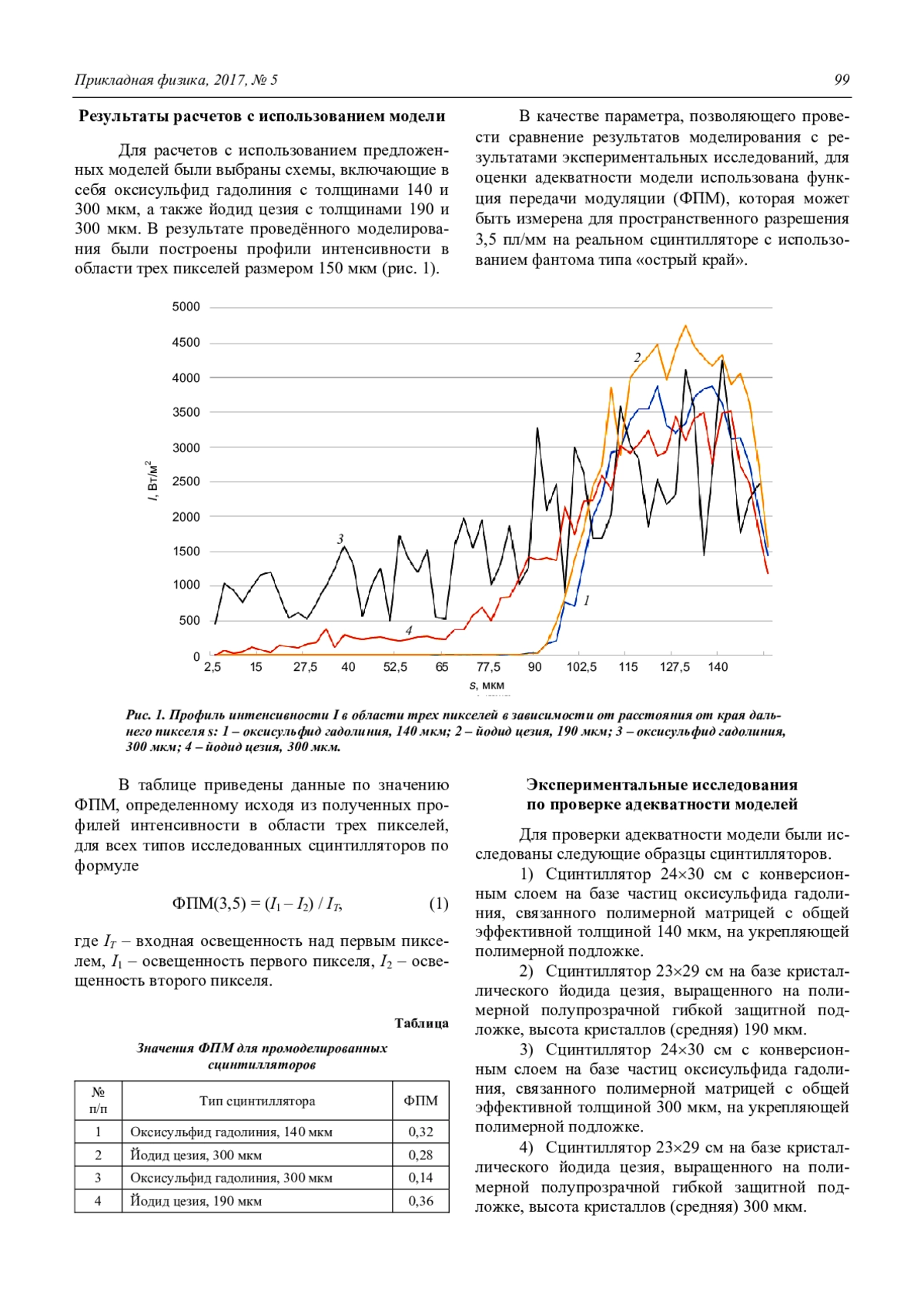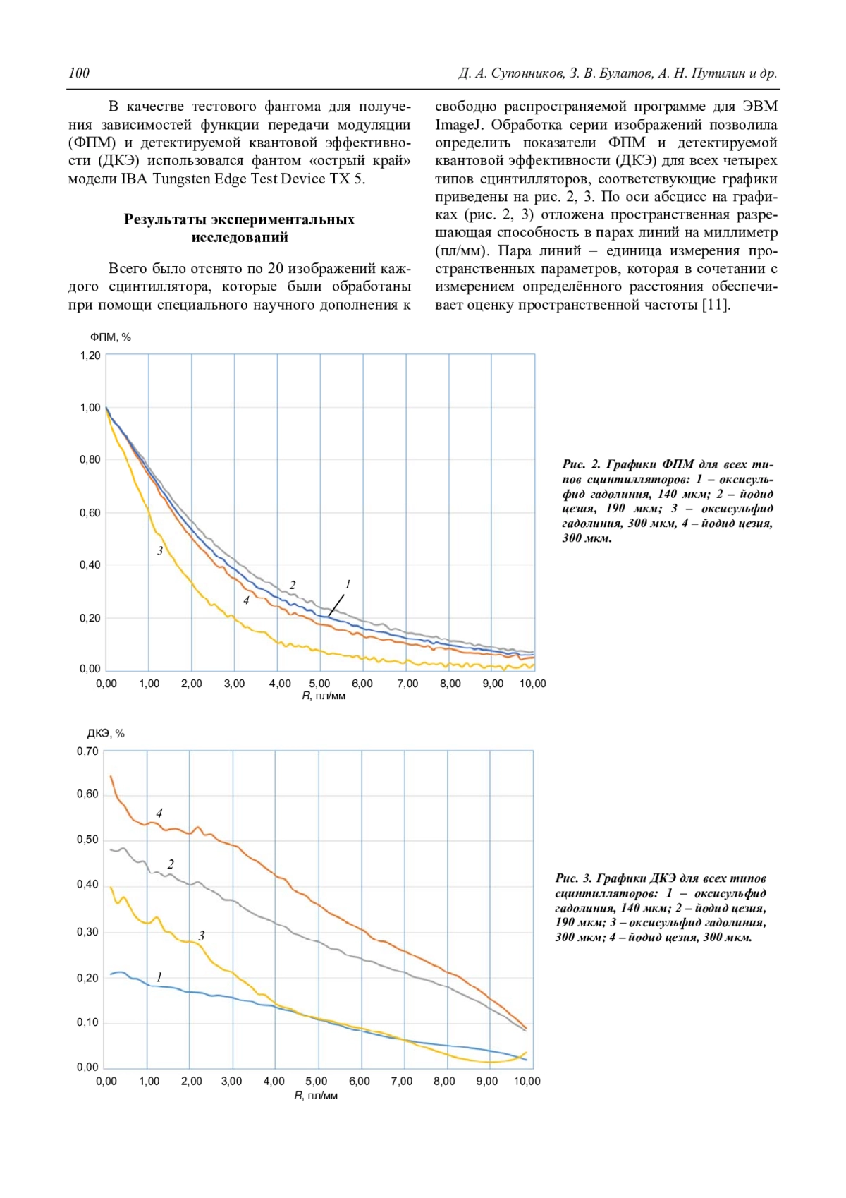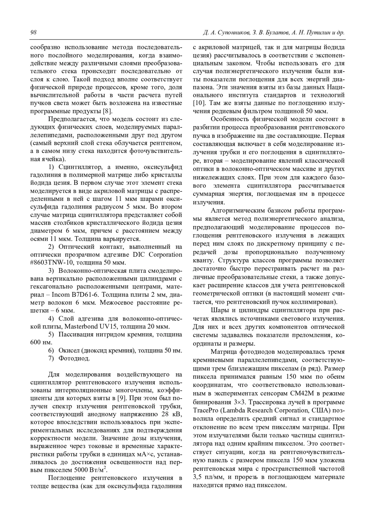 Супонников Д. А., Булатов З. В., Путилин А. Н., Татаринова Е. А., Дабагов А. Р. Моделирование конверсионных свойств сцинтилляторов для рентгеночувствительных панелей цифровых детекторов 97
