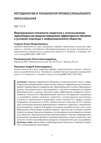 13. Спирина Е. В., Рукавишникова Е. А., Арушанян Е. В. и др. Готовность педагога к использованию мультимедиа как средства повышения эффективности обучения (из опыта работы): учебно- методическое пособие. Ульяновск: УлГПУ, 2023. 41 с.