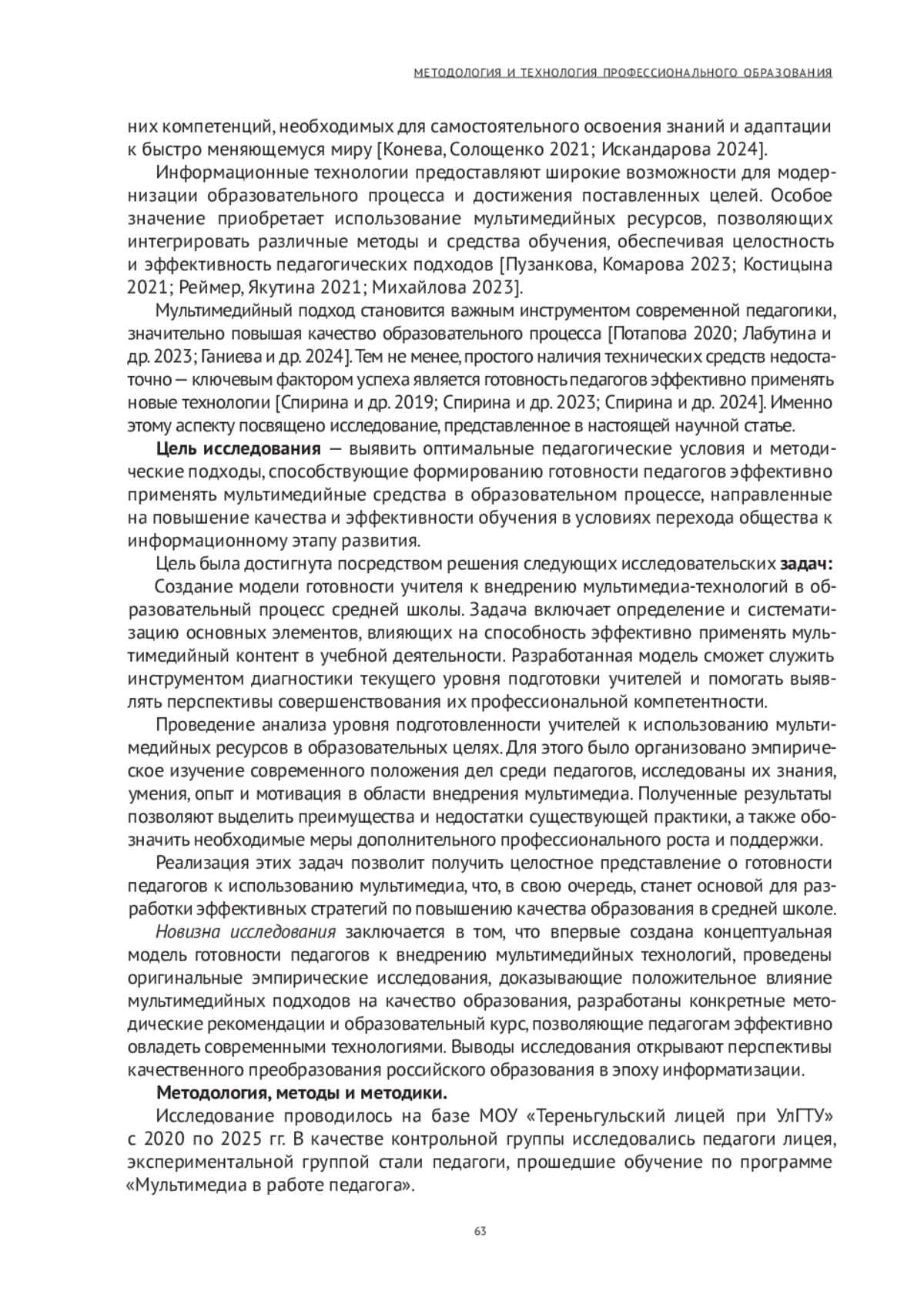 15. Спирина Е. В., Рукавишникова Е. А., Серов А. М. и др. Мультимедиа как средство повышения эффективности обучения (из опыта работы): Учебно-методическое пособие. Ульяновск: УлГПУ, 2024. 65 с.