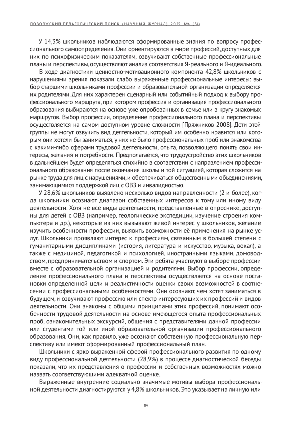 8. Поляков В. А., Чистякова С. Н., Волошин С. А. и др. Профессиональное самоопределение молодежи // Педагогика. 1993. № 5. С. 33-37.