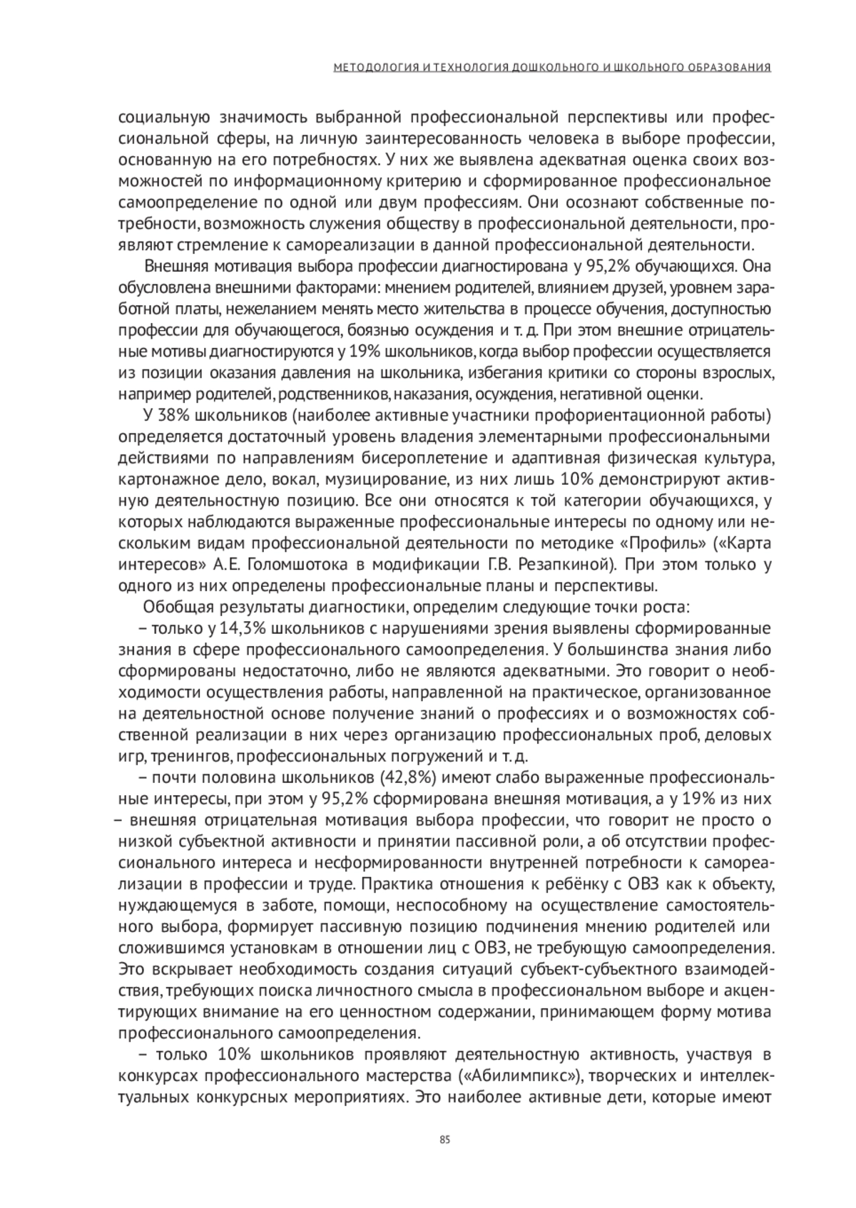 Современные образовательные процессы раскрывают актуальность проблемы самоопределения лиц с ограниченными возможностями, пути решения которой невозможно исследовать в отрыве от существующих социально-экономических и политических тенденций. По мнению многих исследователей, почти половина школьников старших классов не осознаёт соответствия между собственным профессиональным самоопределением и реальными социальными потребностями, возможностями социально-экономической ситуации в стране [Чернявская и др. 2022].