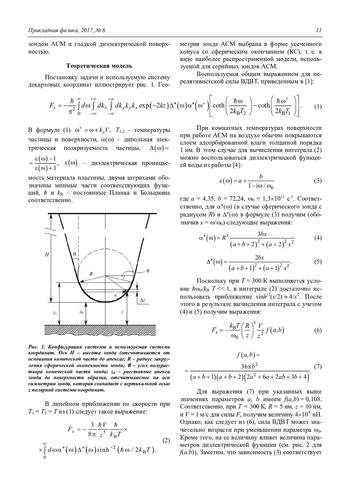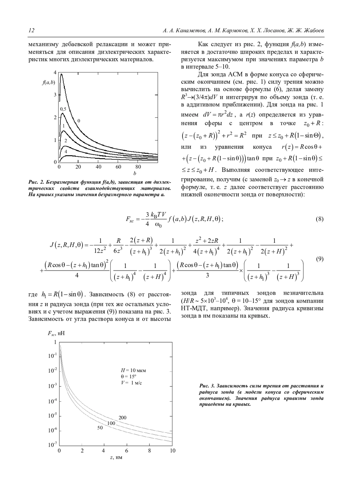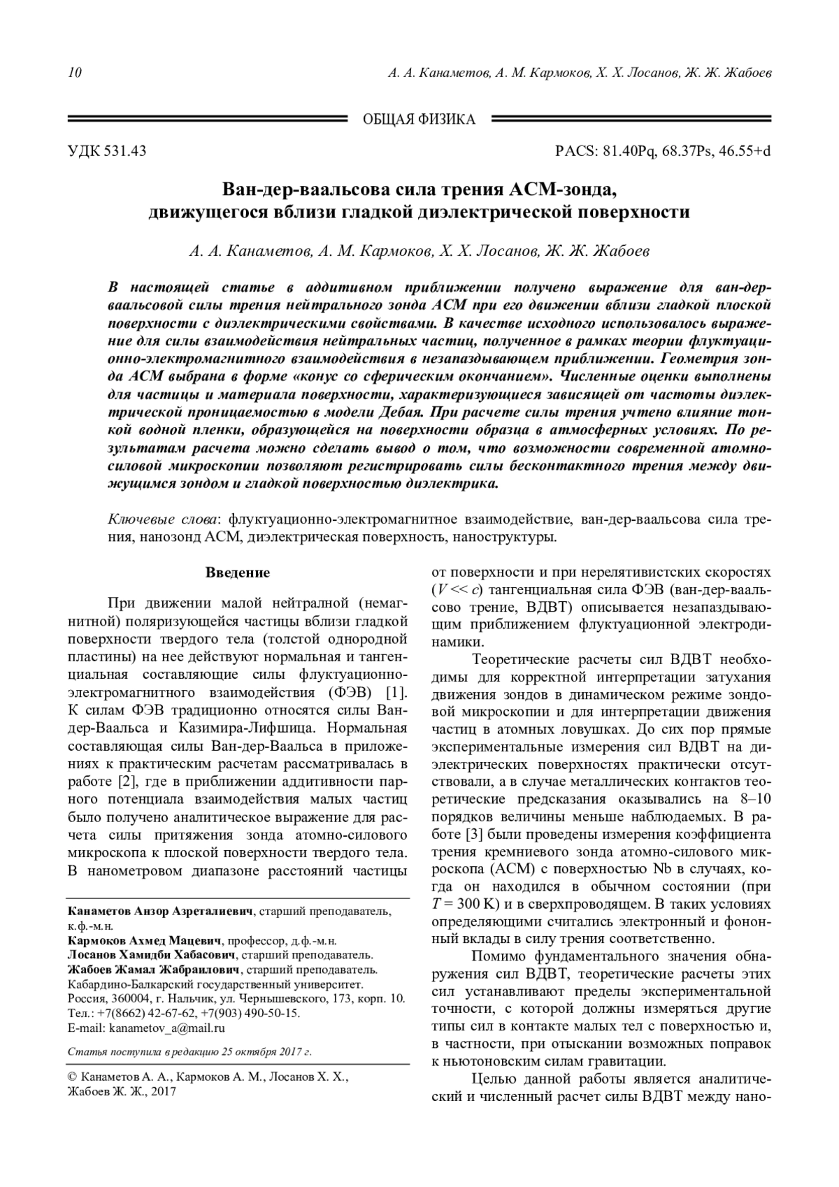 Канаметов А. А., Кармоков А. М., Лосанов Х. Х., Жабоев Ж. Ж. Ван-дер-ваальсова сила трения АСМ-зонда, движущегося вблизи гладкой диэлектрической поверхности 10
