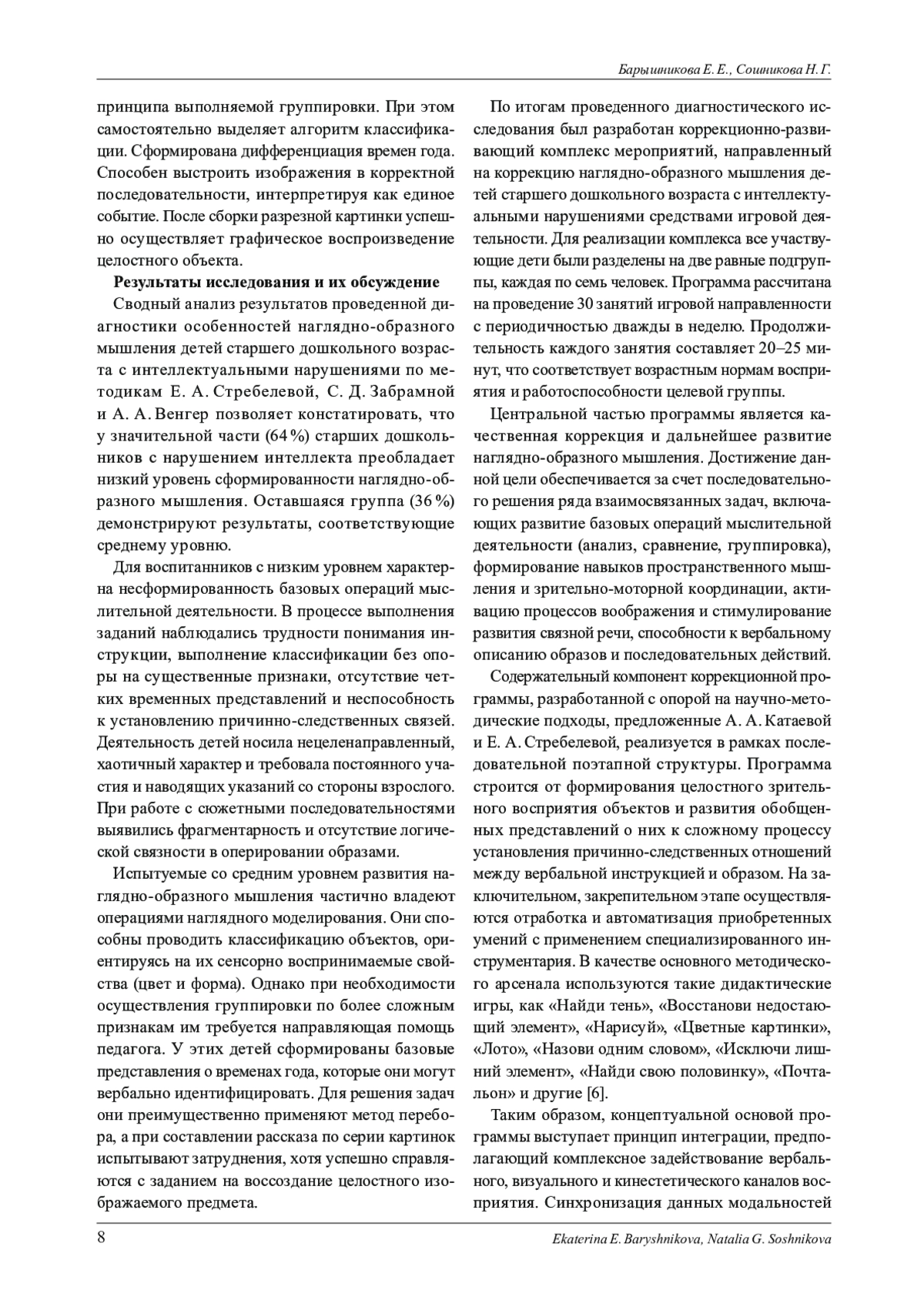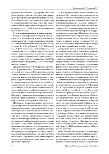 7. Матасов Ю. Т., Медникова Л. С. Исследование предпосылок развития наглядно-образного мышления детей с интеллектуальной недостаточностью // Общество: социология, психология, педагогика. 022. № 11 (103). С. 72-79.