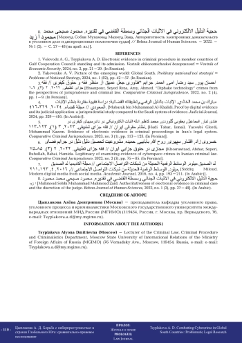 Мубарак бин Мухаммад Аль-Халиди. Доказательство с помощью цифровых доказательств и его судебное применение: юриспруденческое исследование в сравнении с саудовской системой доказательств // Судебный журнал. - 2024. - С. 329-416 (на араб. яз.).