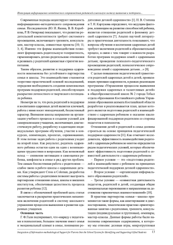 7. Степина Н. В., Картукова Т. Н. Особенности детско-родительских отношений в семьях, воспитывающих одаренных детей // Современные проблемы науки и образования. 2018. № 6. С. 417-419.