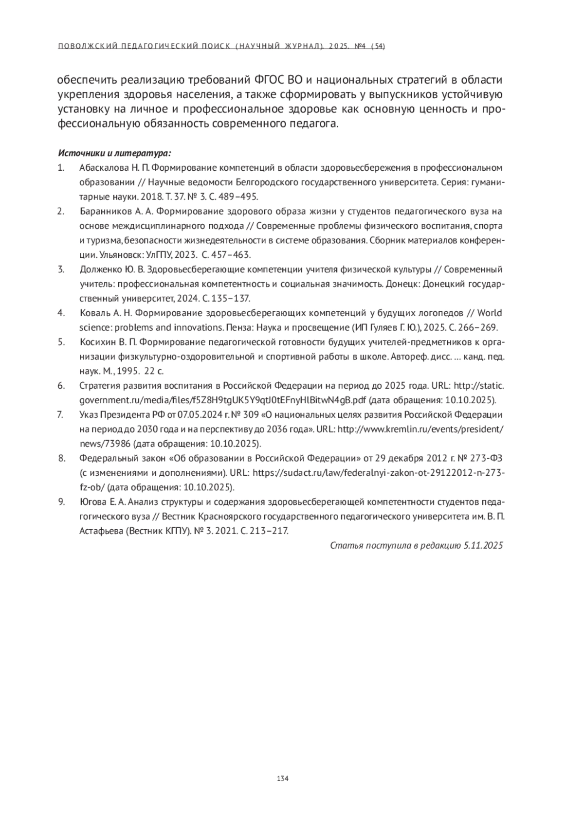 8. Федеральный закон «Об образовании в Российской Федерации» от 29 декабря 2012 г. № 273-ФЗ (с изменениями и дополнениями). URL: https://sudact.ru/law/federalnyi-zakon-ot-29122012-n-273-fz-ob (дата обращения: 10.10.2025).