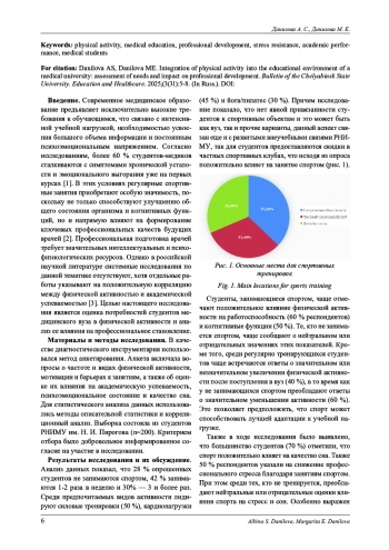 Современное медицинское образование предъявляет исключительно высокие требования к обучающимся, что связано с интенсивной учебной нагрузкой, необходимостью усвоения большого объема информации и постоянным психоэмоциональным напряжением. Согласно исследованиям, более 60 % студентов-медиков сталкиваются с симптомами хронической усталости и эмоционального выгорания уже на первых курсах [1]. В этих условиях регулярные спортивные занятия приобретают особую значимость, поскольку не только способствуют улучшению общего состояния организма и когнитивных функций, но и напрямую влияют на формирование ключевых профессиональных качеств будущих врачей [2].