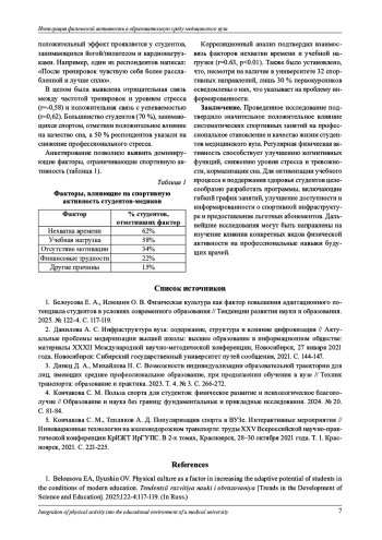 1. Белоусова Е. А., Илюшин О. В. Физическая культура как фактор повышения адаптационного потенциала студентов в условиях современного образования // Тенденции развития науки и образования. 025. № 122-4. С. 117-119.