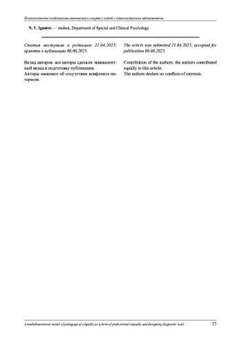 Актуальность исследования обусловлена необходимостью проектирования и разработки точной диагностики профессиональной эмпатии педагога как ключевой компетенции, определяющей качество образовательного процесса, эмоциональное благополучие учащихся и эффективность инклюзивной среды. В статье показано, что традиционные опросники эмпатии, созданные для клинических, межкультурных или общепсихологических задач, не отражают специфические регуляторно-коммуникативные функции учителя: прогнозирование образовательной траектории, управление эмоциями в классе, перевод эмпатических им пульсов в устойчивые педагогические действия. Предложенная Шкала эмпатии для учителей (EST) принципиально отличается от существующих инструментов многоуровневой структурой, адаптированной на выборке российских учителей. Она фиксирует когнитивный, позитивно-аффективный и негативно-аффективный компоненты, сочетая оценку прогностической функции с измерением дифференцированной аффективной регуляции и поведенческой системности. В отличие от классических однофакторных опросников, Шкала эмпатии для учителей учитывает специфику длительных педагогических отношений и напрямую соотносится с задачами обучения и социализации. Теоретически обосновано выделение двух взаимодополняющих типов эмпатии: межличностной, направленной на понимание индивидуального эмоционально-когнитивного состояния ученика, и социальной, обеспечивающей учет культурных, семейных и социальных условий обучения. Их интеграция отражает способность учителя одновременно поддерживать личностный контакт и учитывать структурные факторы, влияющие на академическую мотивацию и вовлеченность. В разработанную модель включены двенадцать типичных ситуаций школьного обучения: от установления правил класса, планирования урока и мотивации до реагирования на тревожность, урегулирования конфликтов и оценки результатов тестирования. Эти контексты позволяют оценить проявления межличностной и социальной эмпатии как системного профессионального качества, обеспечивающего справедливое взаимодействие, поддержку и высокие образовательные стандарты. Таким образом, проектируемая многомерная модель педагогической эмпатии, как и шкала эмпатии для учителей создают научно и практико-ориентированную основу для комплексной диагностики и развития эмпатических компетенций учителей, способствуя формированию эмоционально безопасной и учебно-результативной образовательной среды.