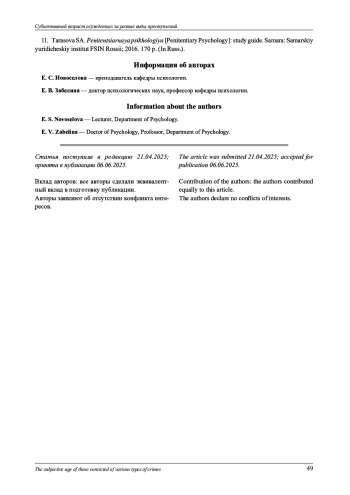 2. Звягинцев М. В., Звягинцева Е.Н. К вопросу об уровне развития когнитивных и интеллектуальных способностей осужденных 18-20 лет и использования образования как фактора профилактики преступлений // Проблемы современного педагогического образования. 2020. № 66-2. С. 175-178.