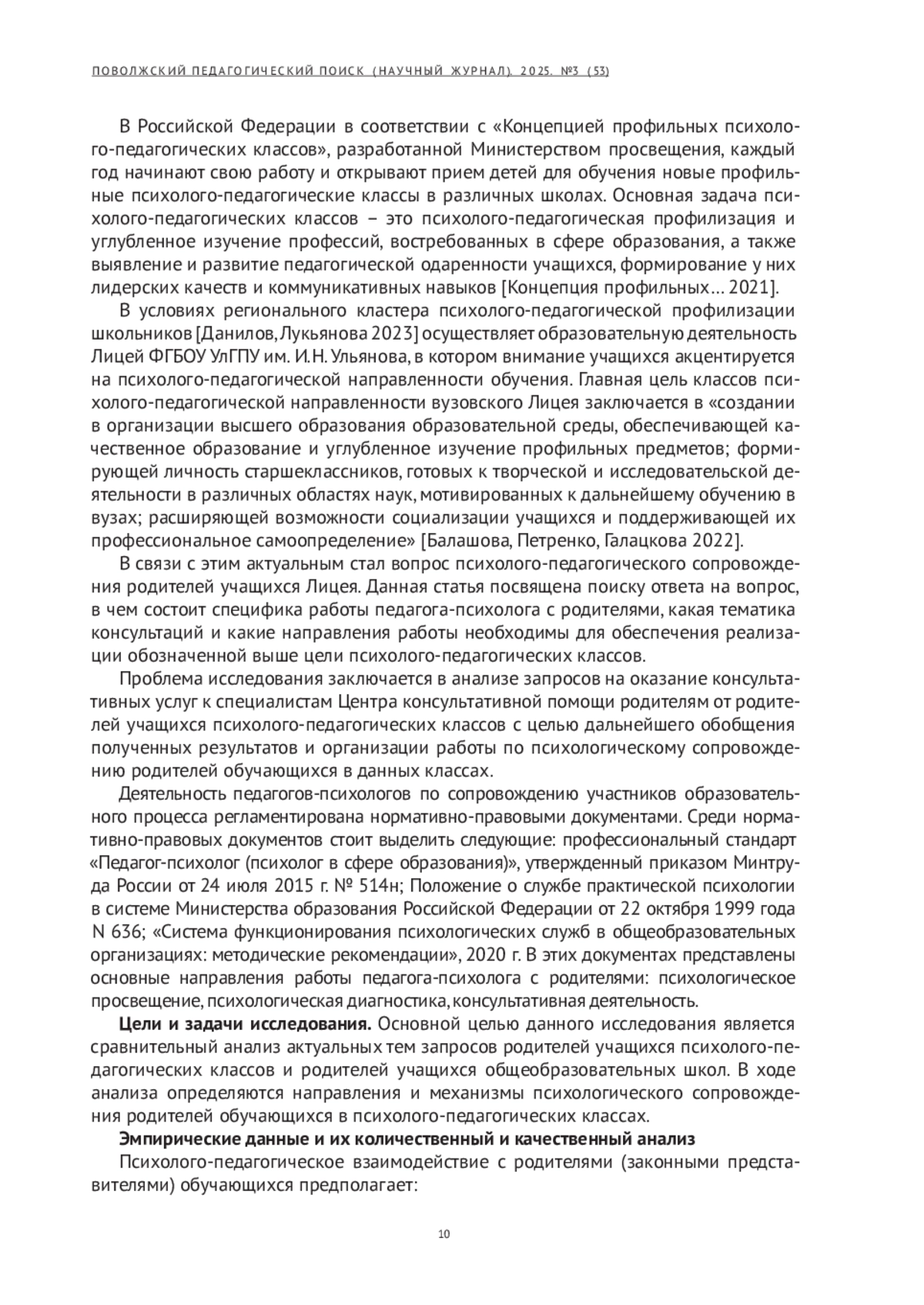 3. Галацкова И. А., Петренко Е. Л. Организация деятельности профильных психолого-педагогических классов // Поволжский педагогический поиск. 2024. №1 (47). С. 8-16. EDN: ASEBXS