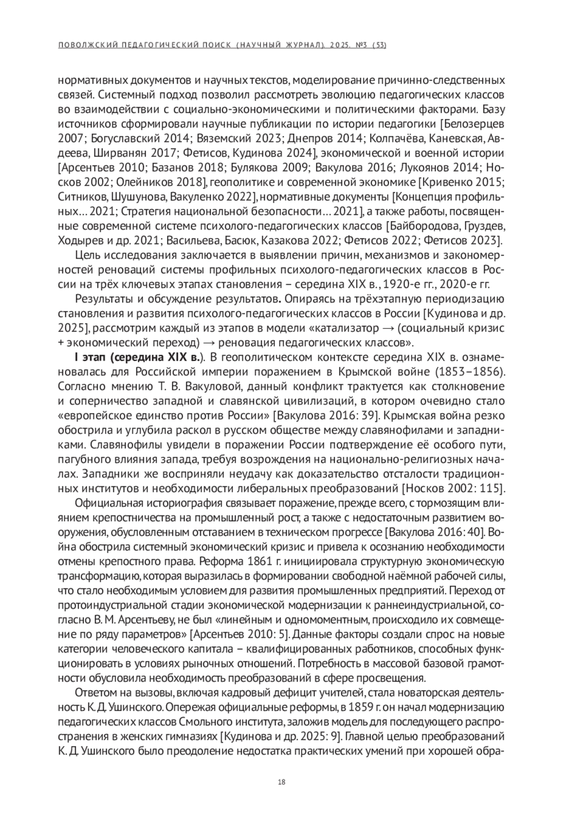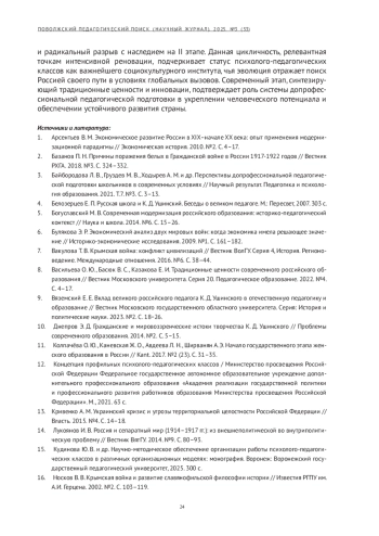 22. Фетисов А.С. Идейные основы психолого-педагогических классов в наследии К.Д. Ушинского // Гуманитарные исследования. Психология и педагогика. 2023. №15. С. 7-14.