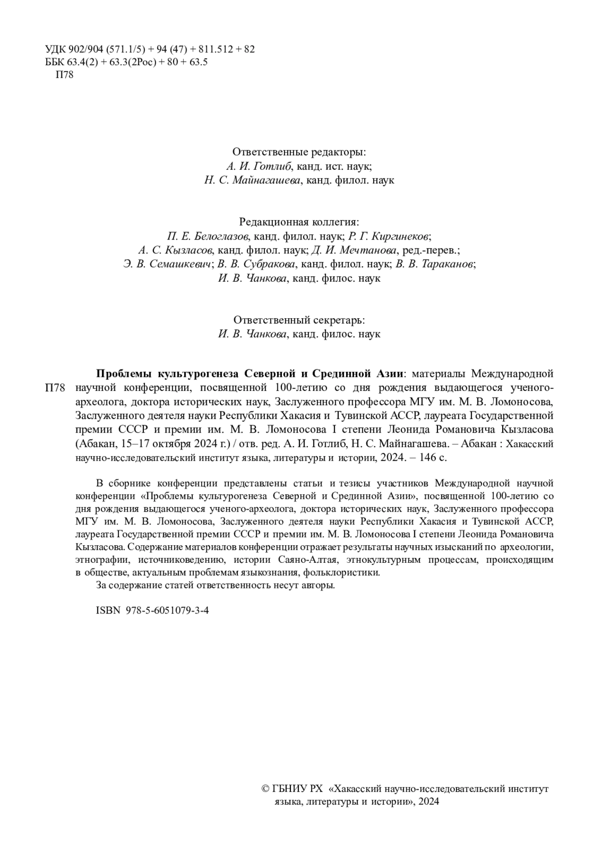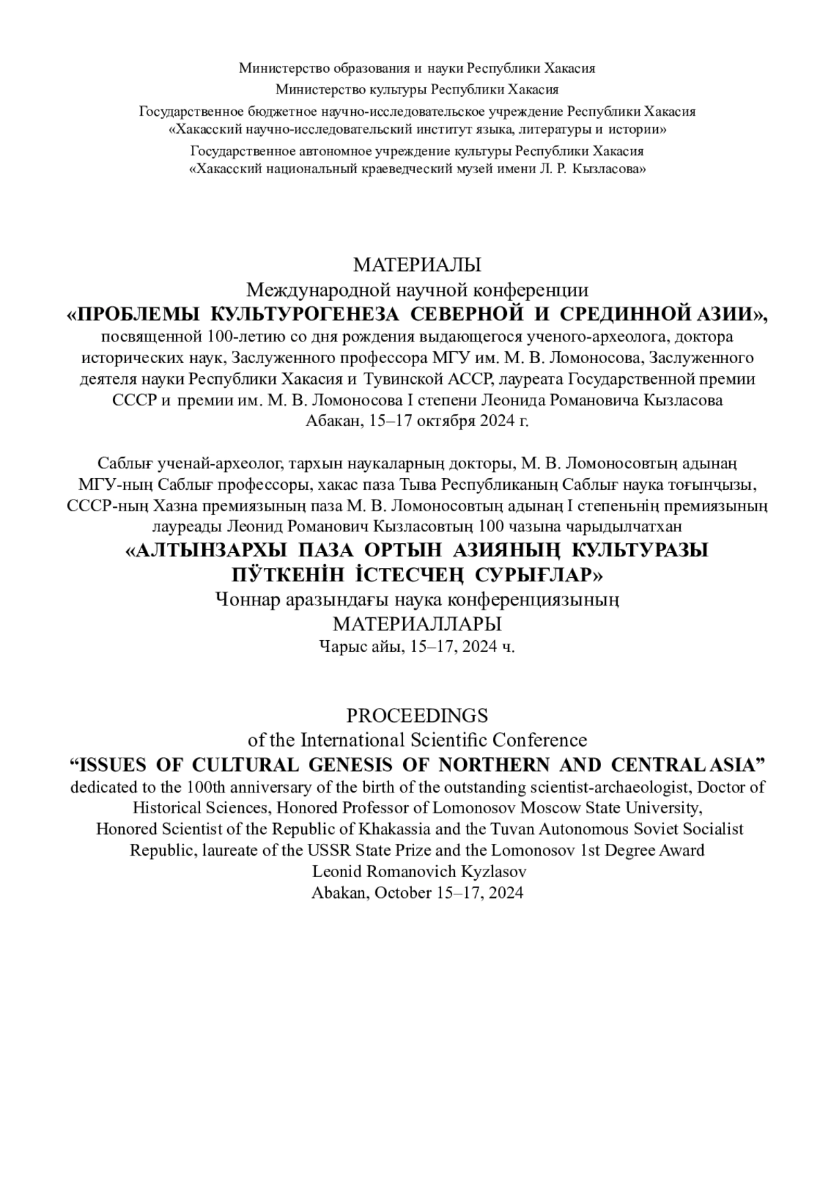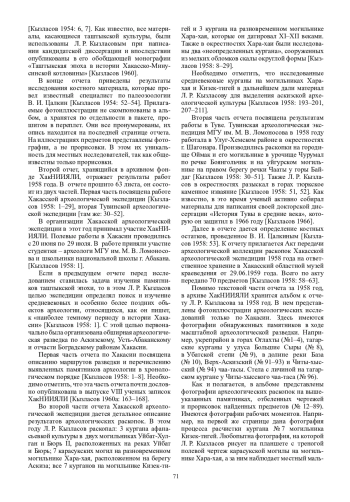 Статья посвящена описанию и анализу археологических отчетов Л. Р. Кызласова, которые хранятся в рукописном фонде ХакНИИЯЛИ. Здесь имются археологические отчеты за 1951, 1958 и 1959 годы. В них представлены результаты археологических работ на таких известных и значимых памятниках Хакасии как Изыхский чаа-тас, Сулекская писаница, Оглахтинский укрепрайон, кольцевые Троицкие городища. Описаны результаты раскопок средневековых могильников XI-XII вв. Хара-хая, Кизек-тигей и Све-тах, материалы которых послужили Л. Р. Кызласову основой для выделения аскизской археологической культуры. Интересны его этнографические изыскания и палеогеографические наблюдения, отраженные в отчетах. Многие детали не были опубликованы, тем самым отчеты имеют значительный источниковедческий потенциал.