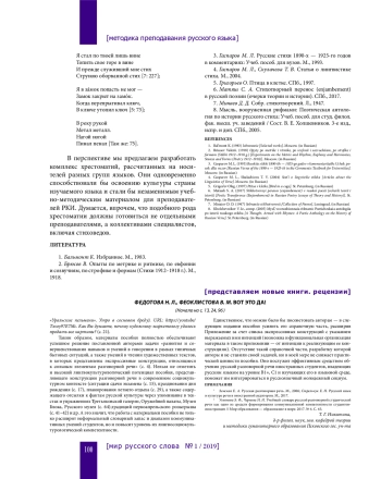 Практика преподавания РКИ сформировала представление о стихотворном тексте как наиболее сложном для чтения и понимания иностранной аудиторией. Между тем он оказывается тем благодатным материалом, который активно стимулирует освоение РКИ как на начальной стадии обучения, так и на этапах совершенствования владения языком