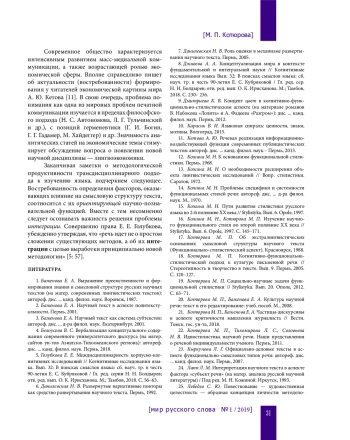 5. Голубкова Е. Е. Междисциплинарность корпусно-когнитивных исследований // Когнитивные исследования языка. Вып. 32: В поисках смыслов языка: сб. науч. тр. в честь 90-летия Е. С. Кубряковой / Гл. ред. серии Н. Н. Болдырев; отв. ред. вып. О. К. Ирисханова. М.; Тамбов, 2018. С. 56-63. EDN: OSYWXX