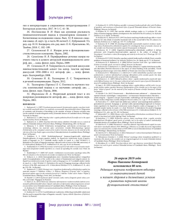 18. Котюрова М. П. Когнитивно-функционально-стилистический подход к культуре письменной речи // Стереотипность и творчество в тексте. Вып. 9. Пермь, 2005. С. 120-127.