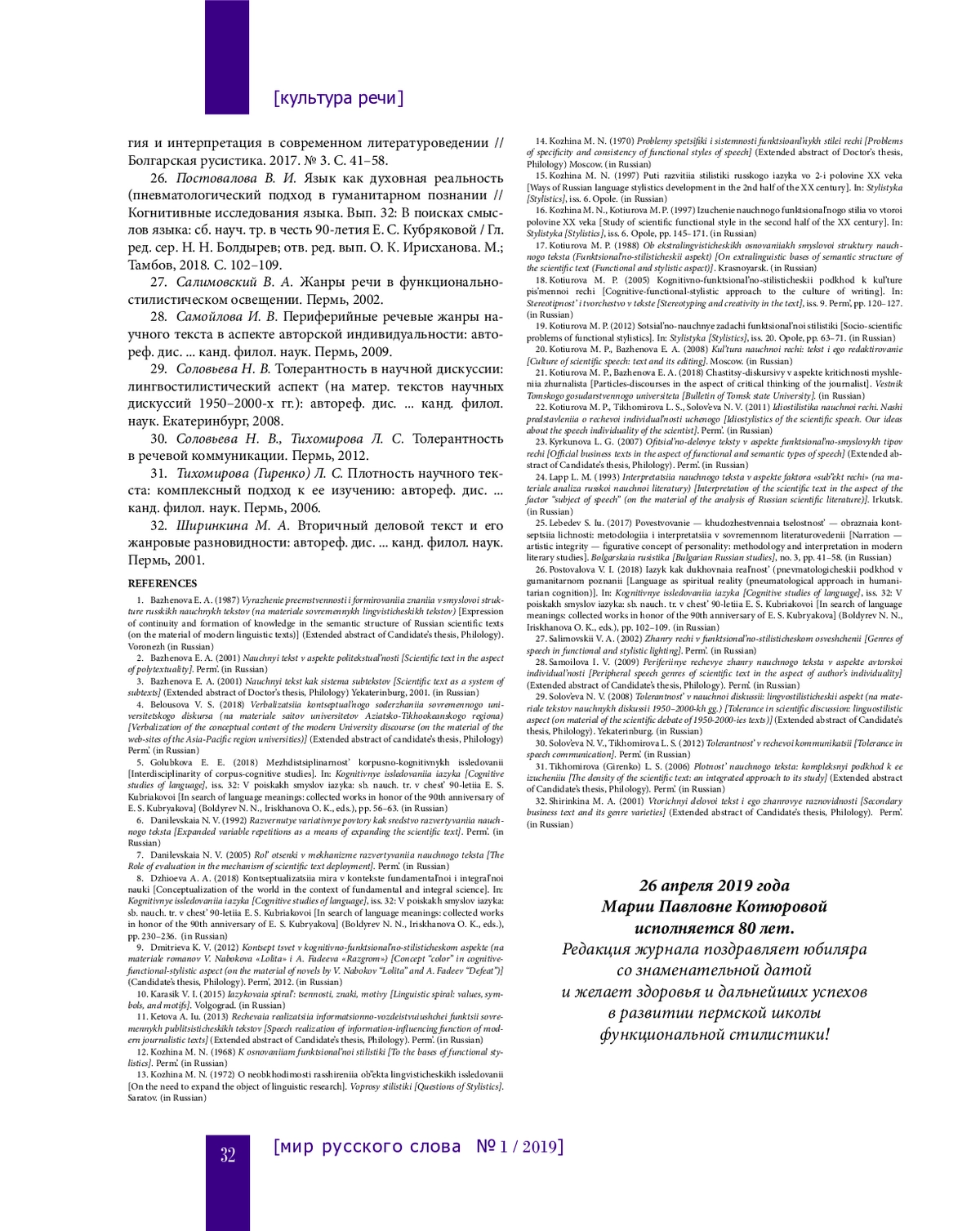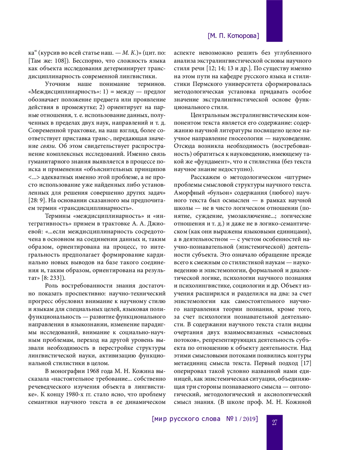 19. Котюрова М. П. Социально-научные задачи функциональной стилистики // Stylistyka. Вып. 20. Ополе, 2012. С. 63-71.