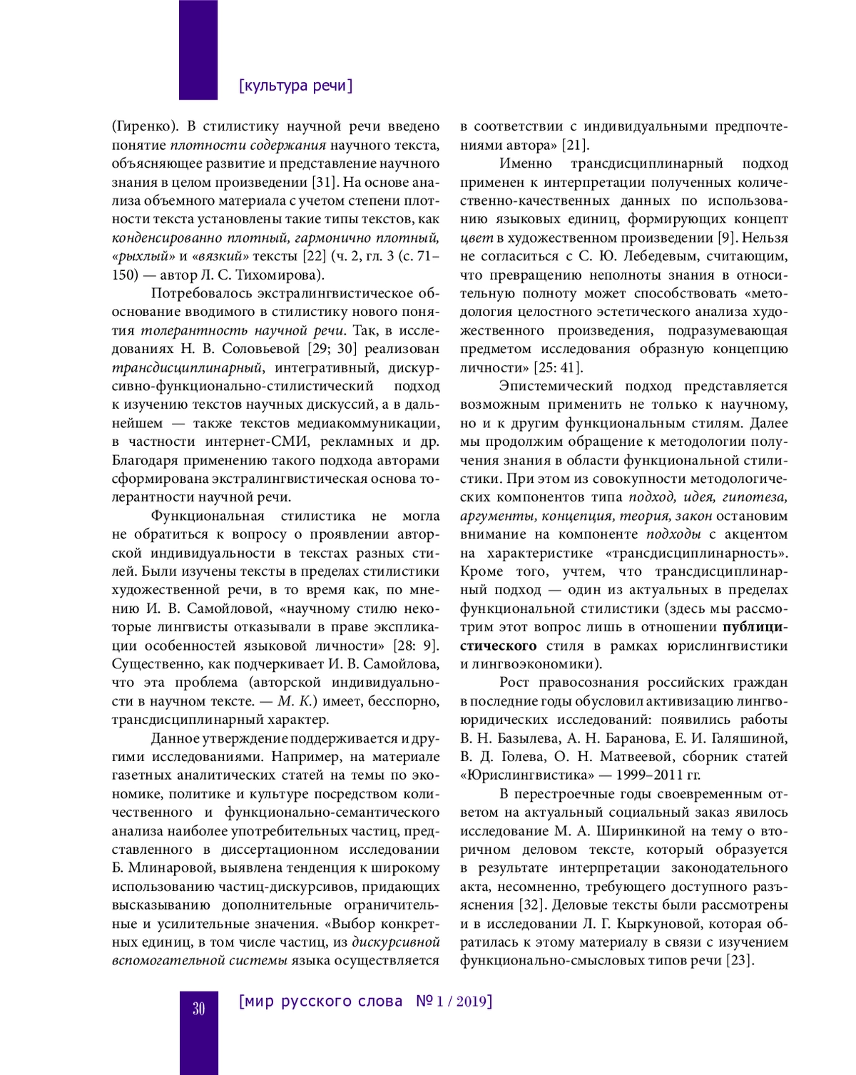 30. Соловьева Н. В., Тихомирова Л. С. Толерантность в речевой коммуникации. Пермь, 2012. EDN: WDXHIT