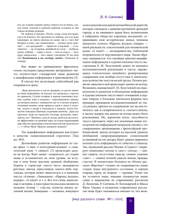 В статье анализируется информационная структура современного и классического рассказа на материале произведений А. П. Чехова и русскоязычных прозаиков XXI века. Выявляются сходства и различия в способах и этапах модификации информации в них, а также методический потенциал когнитивного подхода к анализу языка произведения в аспекте преподавания РКИ