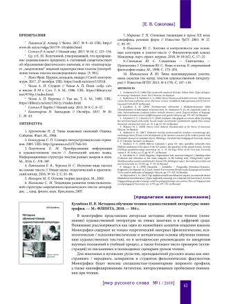 3. Лазуткина Е. М. Преобразование информации в художественном тексте // Логический анализ языка. Информационная структура текстов разных жанров и эпох. М., 2016. С. 378-387. EDN: XBNHEB