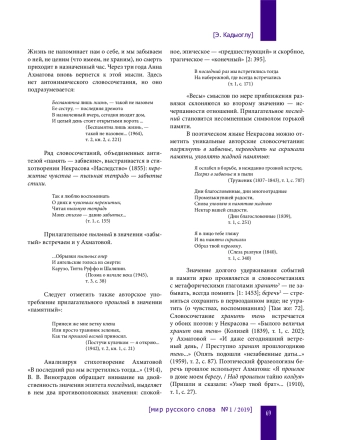 В поэтическом языке личность автора во многом определяет уникальность синтагматических и ассоциативных связей между словами. В образовании этих связей важнейшую роль играют единицы лексикосемантического поля «память». Идиостиль каждого поэта и каждое его произведение имеют свою систему меморативных образов. Особенности мировоззрения автора, его восприятия времени отражает фразеология памяти. Поэтический текст создает уникальные условия для семантической трансформации значений слов, их метафоризации и в то же время для сохранения и продолжения поэтической традиции