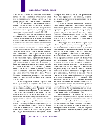 В статье предпринята попытка анализа имагологического образа арабского Востока в построссийской прозе русскоязычной писательницы Дины Рубиной на материале повести «Туман» (2008). Анализ осуществляется в рамках литературоведческой имагологии. Имагологический подход становится особенно продуктивен при рассмотрении своеобразия функционирования и презентации арабского компонента в построссийской прозе Дины Рубиной. Автор также исследует дискурсивные концепты, в которых выстраивается писательницей представление об арабском Востоке