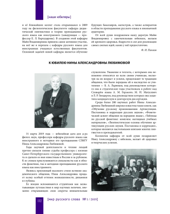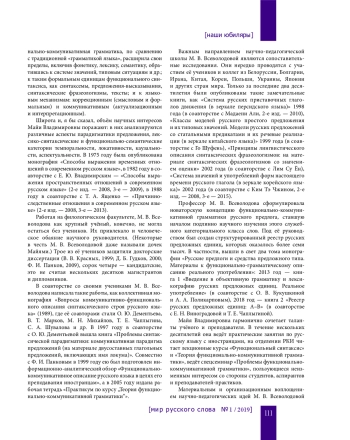 В 2018 году отметила свой юбилей М. В. Всеволодова, заслуженный профессор Московского государственного университета имени М. В. Ломоносова. Её имя широко известно не только в России: без преувеличения можно сказать, что научное творчество этого крупного учёного составляет целую эпоху в теории и практике преподавания русского языка как иностранного, а также в отечественной и зарубежной лингвистике в целом