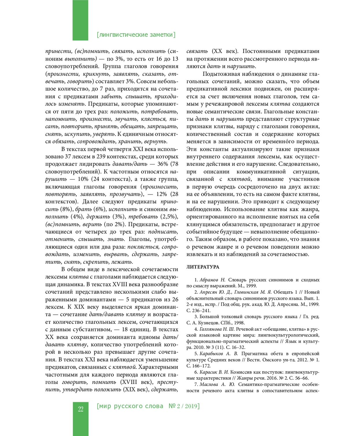 7. Маслова А. Ю. Семантико-прагматические особенности речевого акта клятвы в сопоставительном аспекте (на матер. русского, сербского и болгарского языков) // Вестн. Нижегородского ун-та. № 6 (2). 2011. С. 414-417. EDN: OMTLMB