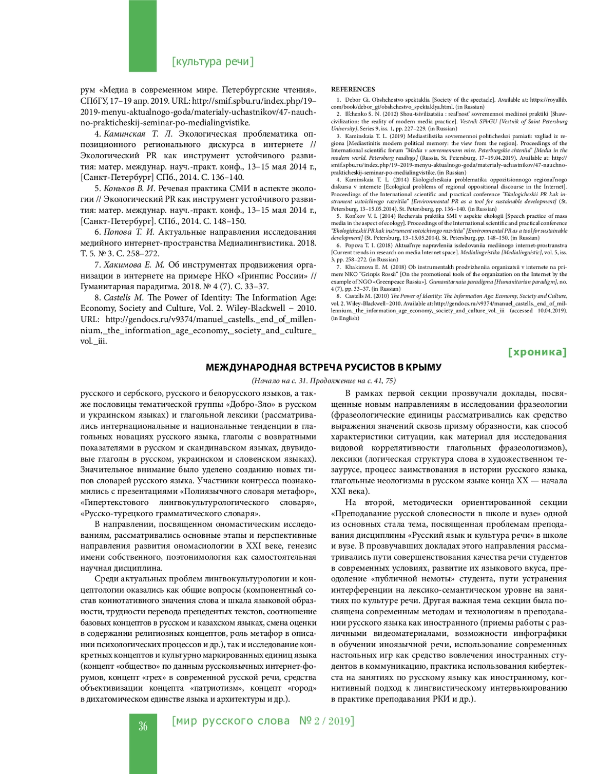 В Ялте с 8 по 12 июня 2019 года состоялся третий международный симпозиум «Русский язык в поликультурном мире», который проводился в рамках ХIII Международного фестиваля «Великое русское слово». На этом представительном симпозиуме встретились не только российские лингвисты, литературоведы и методисты, представляющие более тридцати российских городов, но и русисты из Беларуси, Казахстана, Китая, Македонии, Польши, Сербии, Словакии, Словении, США, Турции и других стран. Объединяло исследования ученых и практиков «русское слово»: его разнообразные словообразовательные возможности, национально маркированный ценностный потенциал, способность глубоко раскрывать художественный смысл, открытость поликультурному миру