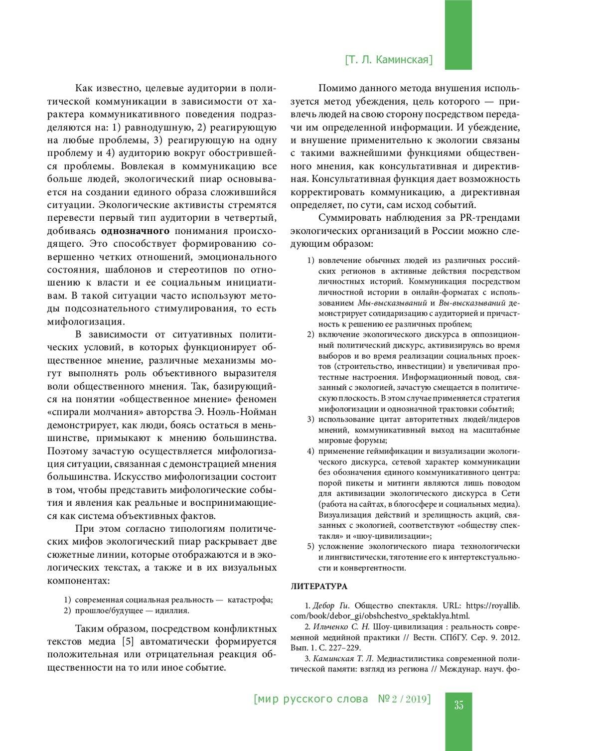 4. Каминская Т. Л. Экологическая проблематика оппозиционного регионального дискурса в интернете // Экологический PR как инструмент устойчивого развития: матер. междунар. науч.-практ. конф., 13-15 мая 2014 г., [Санкт-Петербург] СПб., 2014. С. 136-140.