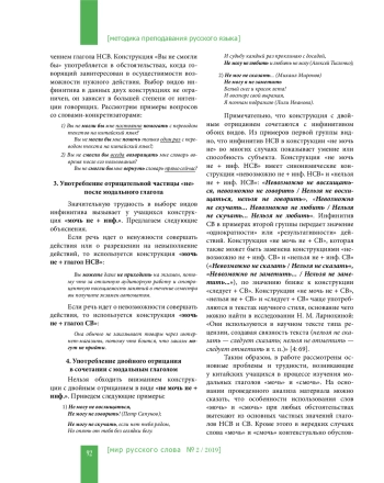 В статье рассматриваются существенные проблемы, возникающие у китайских учащихся при изучении модальных глаголов «мочь» и «смочь». Представлены следующие аспекты: модальные глаголы «мочь» и «смочь» при выражении настоящего, будущего и прошедшего времени; употребление отрицательной частицы «не» после модальных глаголов; употребление двойного отрицания в сочетании с модальными глаголами