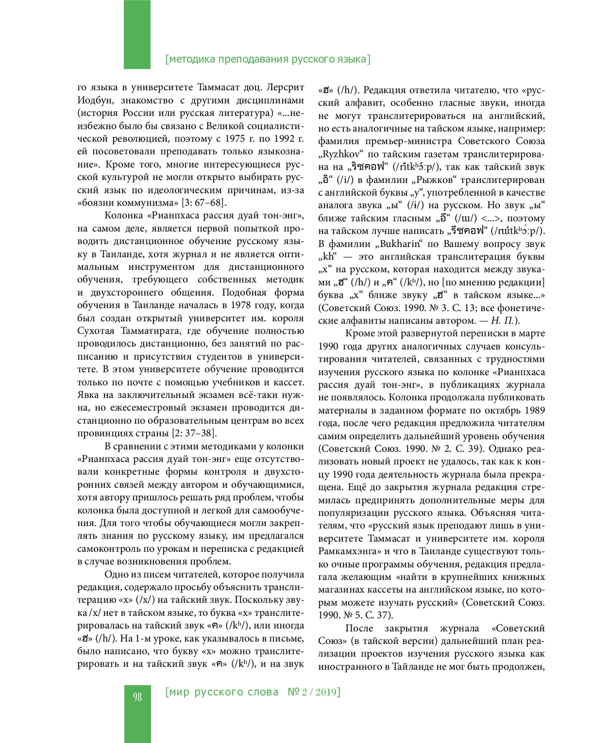 3. Фирамонтри Р. Джак рассия тынг рассиясыкса: квампенма лэ квамджампен [От программы по русскому языку до программы по изучению России: история и необходимость] // Варасан Синлапрасат Махавиттаялай Таммасат [Журн. свободных искусств ун-та Таммасат]. 2003. № 3 (2) С. 66-84.