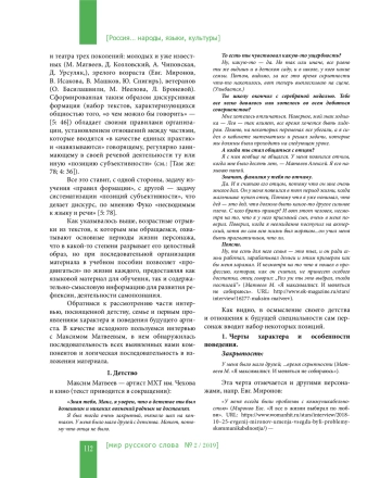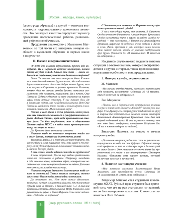 В статье представлен дискурсивный анализ текстов — интервью с современными артистами театра и кино. Объединенные в дискурсивную формацию, они позволяют выявить свою информативную проблемно-тематическую направленность, которая достаточно специфицирована в разные возрастные периоды персонажей. Указанные обстоятельства определяют отбор языковых средств выражения, оставляя возможности субъективного варьирования в употреблении. Как информационная структура, так и языковые средства выражения в методическом осмыслении рассматриваются как база пособий для творческих вузов по русскому языку как иностранному и культуре речи для носителей русского языка