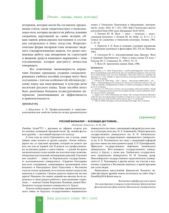 Статья написана в контексте проблематики обучения иностранных студентов и формирования у них межкультурной коммуникативной компетенции. В качестве средства формирования межкультурной компетенции иностранных студентов предлагается учебный спецкурс, который базируется на видеосюжетах русских сказок и легенд и на устойчивых выражениях русского народа, репрезентирующих базовые ценности и нравственные каноны русской культуры. Тематика и методический контент спецкурса ориентированы на развитие страноведческой, языковой и лингвистической компетенций обучаемых. Автор представляет структуру спецкурса, учебный материал, используемый на занятиях, систему работы с данным материалом и некоторые результаты апробации учебного материала. Спецкурс рекомендован иностранным студентам и стажерам с уровнем владения языком B1 и B2