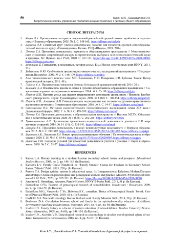 5. Бабушкина О.Ю. Особенности организации генеалогических исследований школьниками // Исследователь/Researcher. 2009. № 2. С. 166-179.