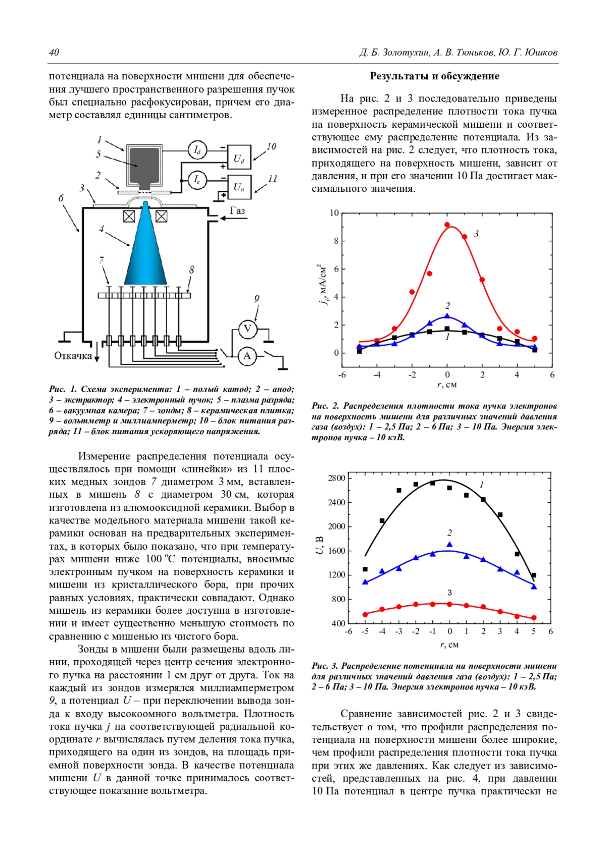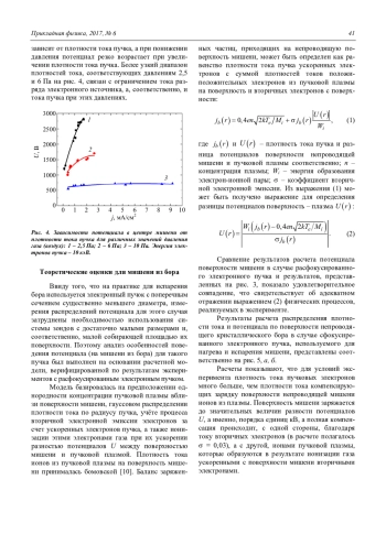 Золотухин Д. Б., Тюньков А. В., Юшков Ю. Г. Распределение потенциала по поверхности борсодержащей непроводящей мишени при облучении электронным пучком в форвакууме 39