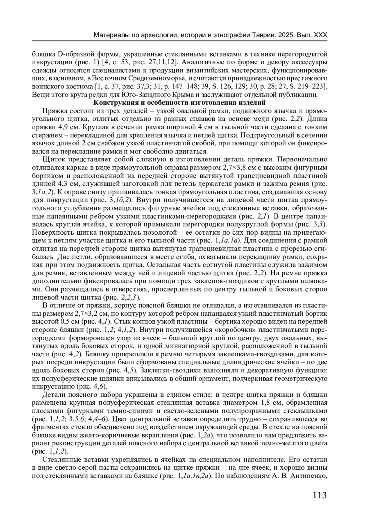32. Khairedinova E.A., Antipenko A.V. Byzantine Cloisonné Belt Set of the First Half of the 6th Century from the Burial Ground near the Village of Luchistoye (Southwestern Crimea) // Nanobiotechnology Reports. 2025. Vol. 20, No. 5. P. 648-653. EDN: RGRSDI