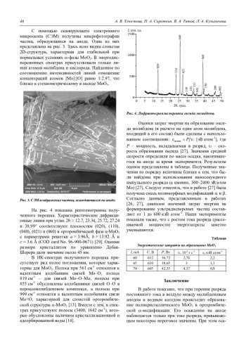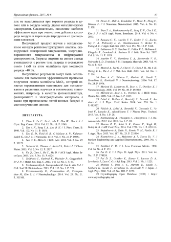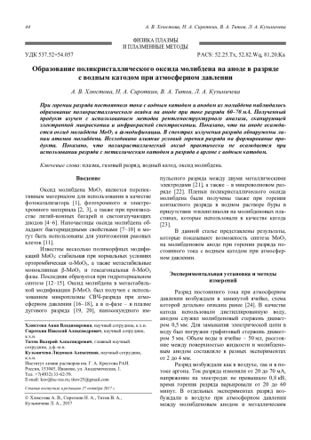 Хлюстова А. В., Сироткин Н. А., Титов В. А., Кузьмичева Л. А. Образование поликристаллического оксида молибдена на аноде в разряде с водным катодом при атмосферном давлении 44