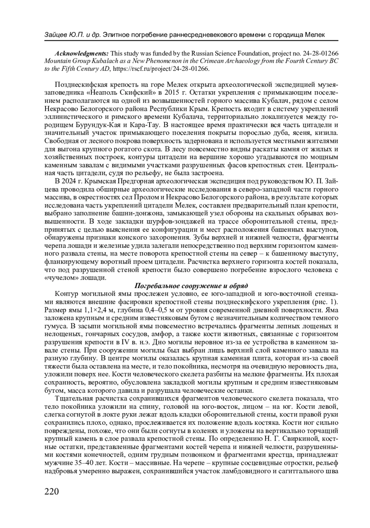 ИЯ: В 2024 году на территории позднескифской крепости Мелек в Белогорском районе Республики Крым обнаружено захоронение кочевника второй трети VII в. в сопровождении «чучела» коня.