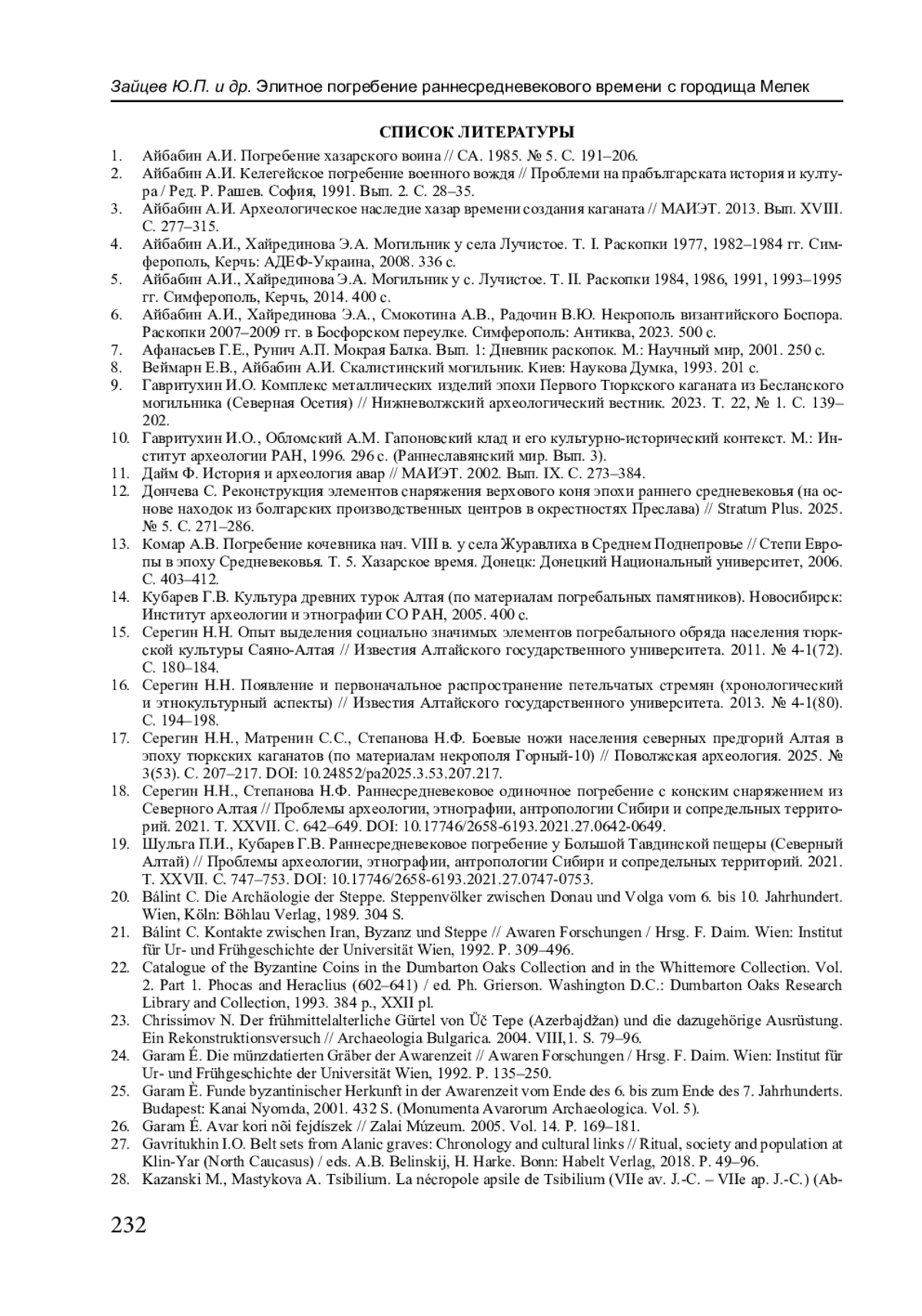 6. Айбабин А.И., Хайрединова Э.А., Смокотина А.В., Радочин В.Ю. Некрополь византийского Боспора. Раскопки 2007-2009 гг. в Босфорском переулке. Симферополь: Антиква, 2023. 500 с. EDN: IMGLYE