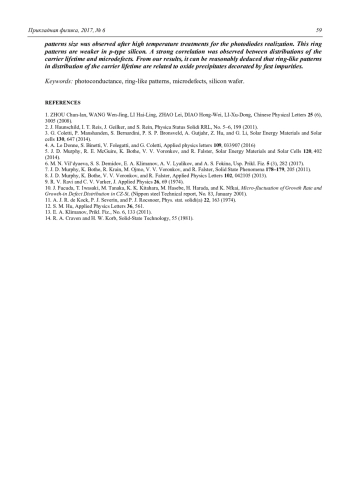 5. Murphy J. D., McGuire R. E., Bothe K., Voronkov V. V., Falster R. // Solar Energy Materials and Solar Cells. 2014. Vol. 120. P. 402.